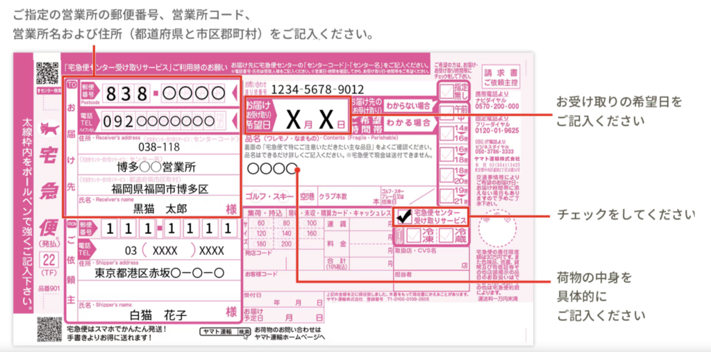 ヤマト運輸にて日付指定、「名古屋栄営業所」センター止めにてご送付ください。